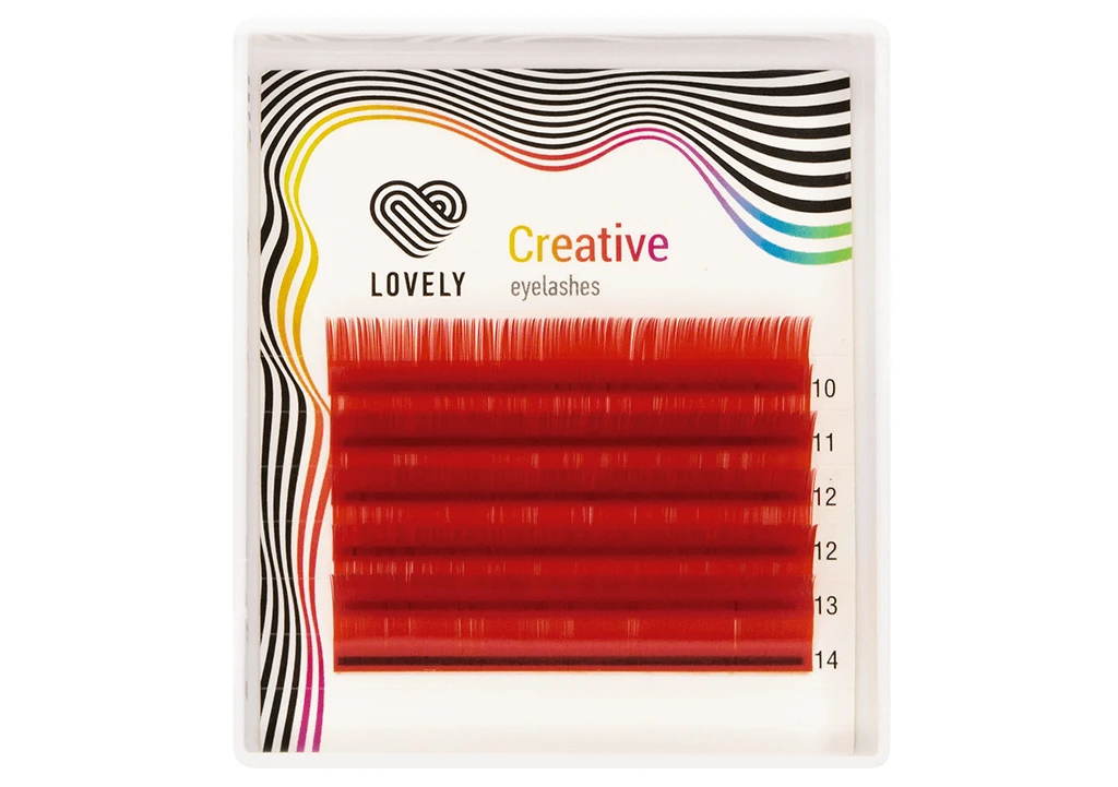 Яркие красные ресницы созданы специально для любителей необычных образов. Такие ресницы выгодно подчеркнут цвет глаз и добавят образу индивидуальности. Красный – яркий, контрастный и очень смелый цвет, идеально подходит девушкам с темными волосами. Цветные ресницы Lovely в оттенке Red можно использовать как в качестве основного цвета, так и как акцент при черном или коричневом наращивании. Все цветные ресницы Lovely изготавливаются из высококачественного волокна, легкие и эластичные, не деформируются в процессе работы и отлично держат форму во время носки. Приобретая красные ресницы Lovely, Вы можете быть уверены в премиальном качестве, так как каждая палетка ресниц проходит тщательную проверку в отделе качества компании Glory Group.   Купить Ресницы красные (red) Lovely, 6 линий, MINI MIX Вы можете у представителей компании Lovely или на нашем сайте.
